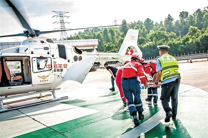 据悉,应急与灾难救治是中山七院重点发展方向之一。目前该院已成为广东省7家全国航空医疗救护联合试点单位之一,同时也是深圳唯一一家“移动医院”建设单位,已逐步形成陆空一体化的紧急救援体系。据悉,深圳交警与东部通航签订战略合作协议,在深圳一旦发生严重的突发道路交通事故,市民只需要拨打电话110、120或83333333,深圳交警将根据现场道路交通情况、现场伤者伤情及时与东部通航、120急救中心开展初步研判。只要符合条件,立即协调派出直升机救援。深圳交警与医护人员会根据伤情判定是否该启动直升机救援,只要是涉及道路交通事故且危及人身生命安全的,空中救援全程免费。