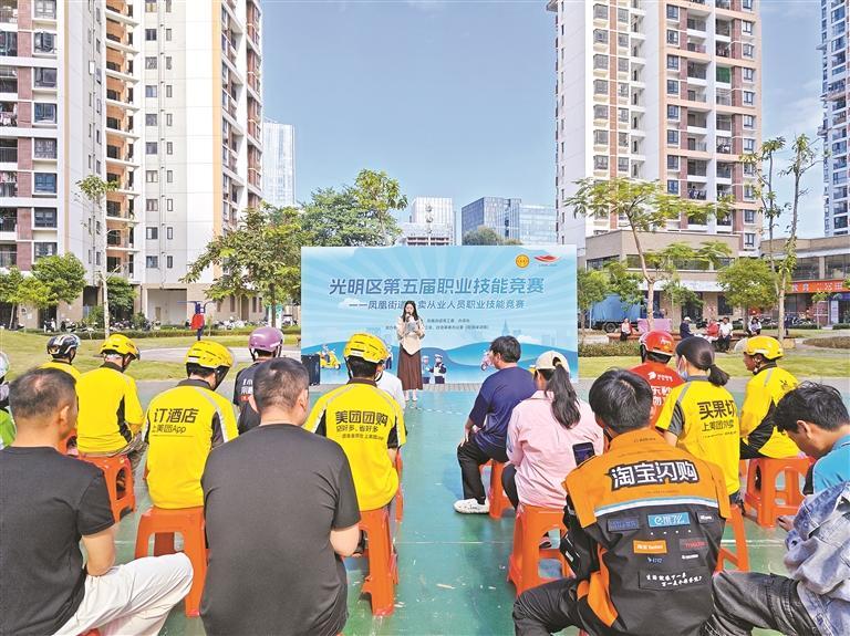 本报讯(光明新闻记者 李军涛 通讯员 金文佳 苏李坚 文/图)为强化外卖骑手交通安全意识,提升规范配送能力,近日,凤凰街道在塘家社区科裕新村篮球场开展了以“光明区第五届职业技能竞赛”为主题的凤凰街道外卖从业人员职业技能竞赛。50余名骑手代表参加竞赛。