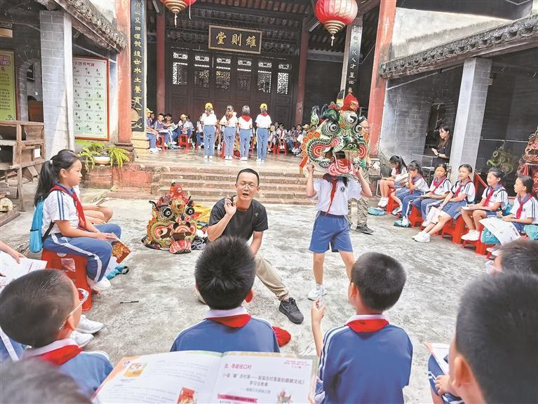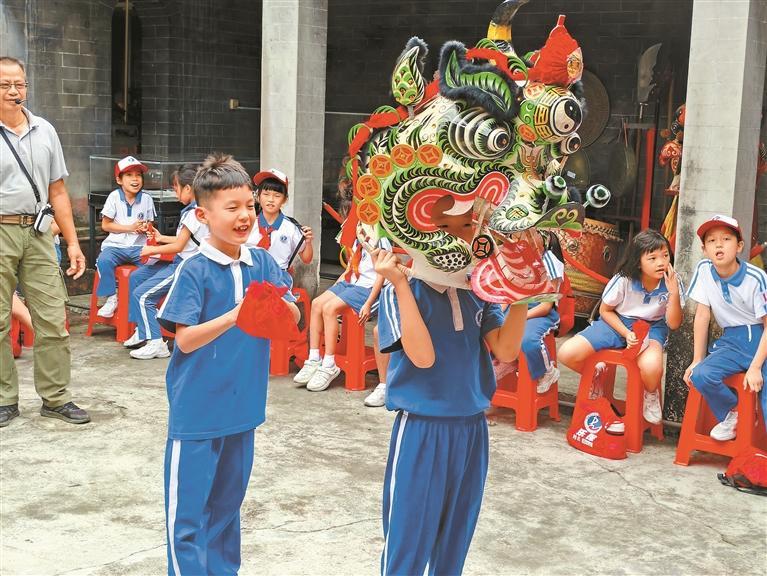 东周小学还组建“少年麒麟队”,并特邀迳口麒麟队传承人身临其境传艺,让非遗技艺在少年指尖鲜活生长;深耕中华优秀传统文化“进校园”向“在校园”的深度转化,通过沉浸式体验、互动式教学,让学生近距离触摸传统文化的肌理与温度,在潜移默化中提升文化素养与审美能力,推动千年文脉在校园沃土中扎根发芽、枝繁叶茂,为教育高质量发展厚植文化底蕴。